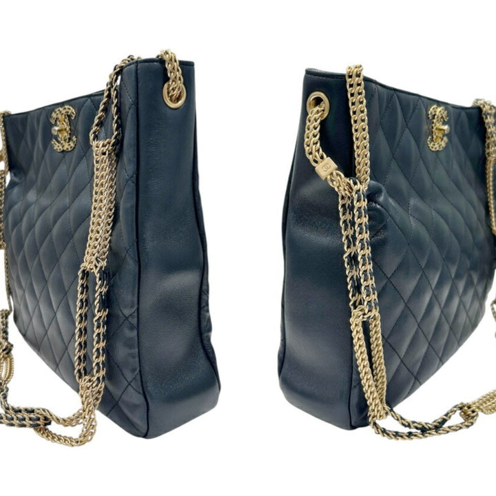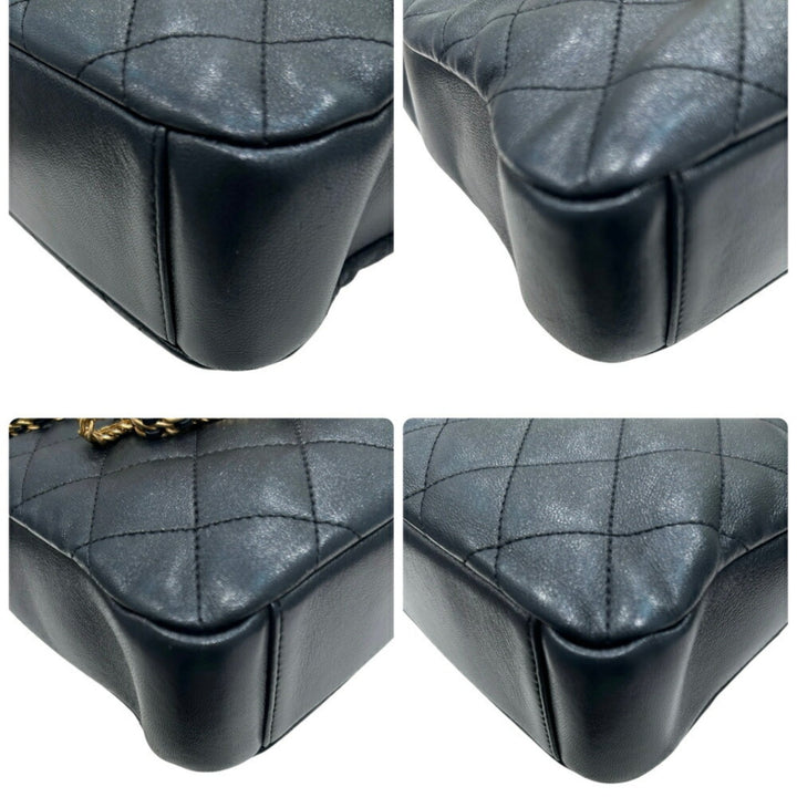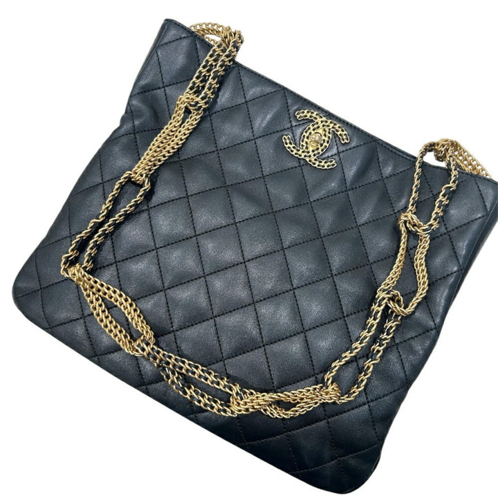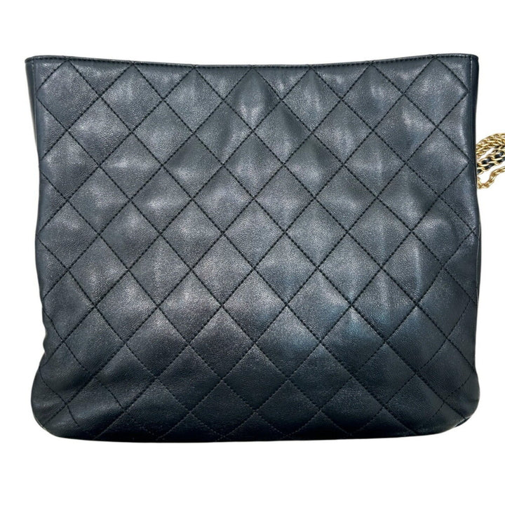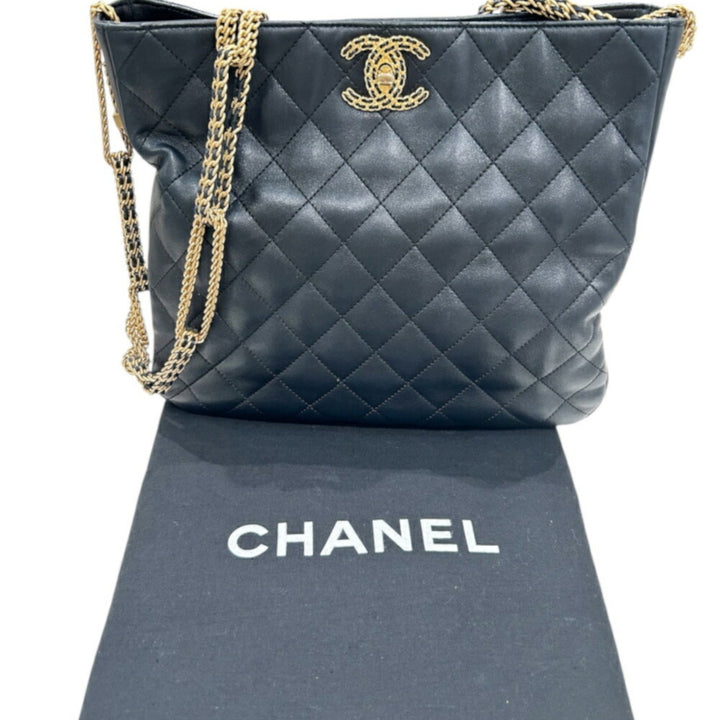 CHANEL Matelasse Chain Hobo Bag in Black Calfskin with Gold Plated Coco Mark and Logo. Women's.