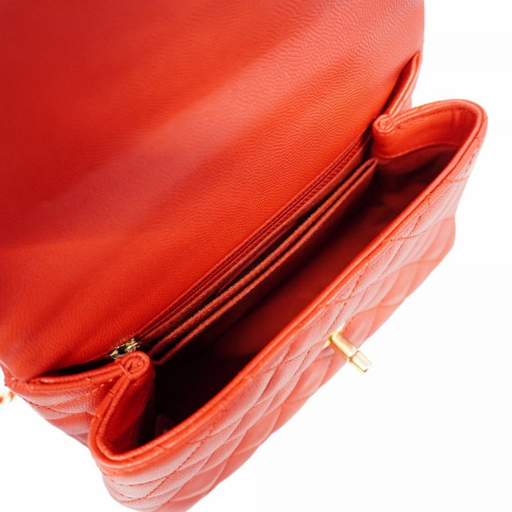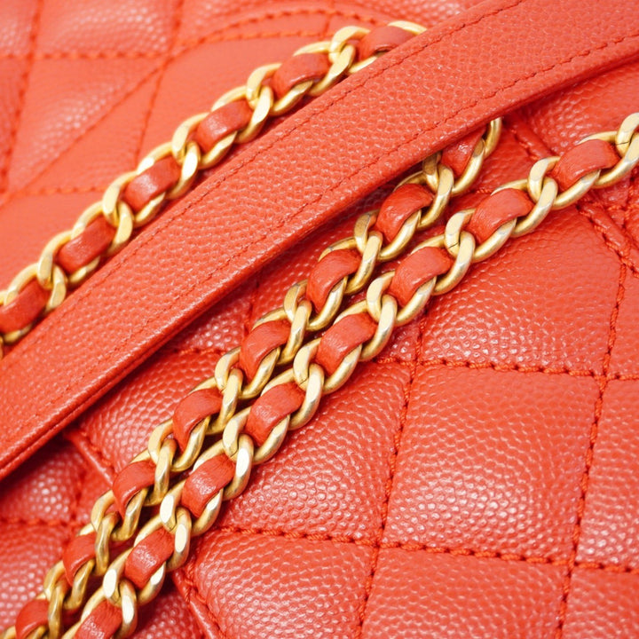 Chanel Matelasse Handbag with Chain Shoulder Bag in Caviar Leather, Red, Women's
