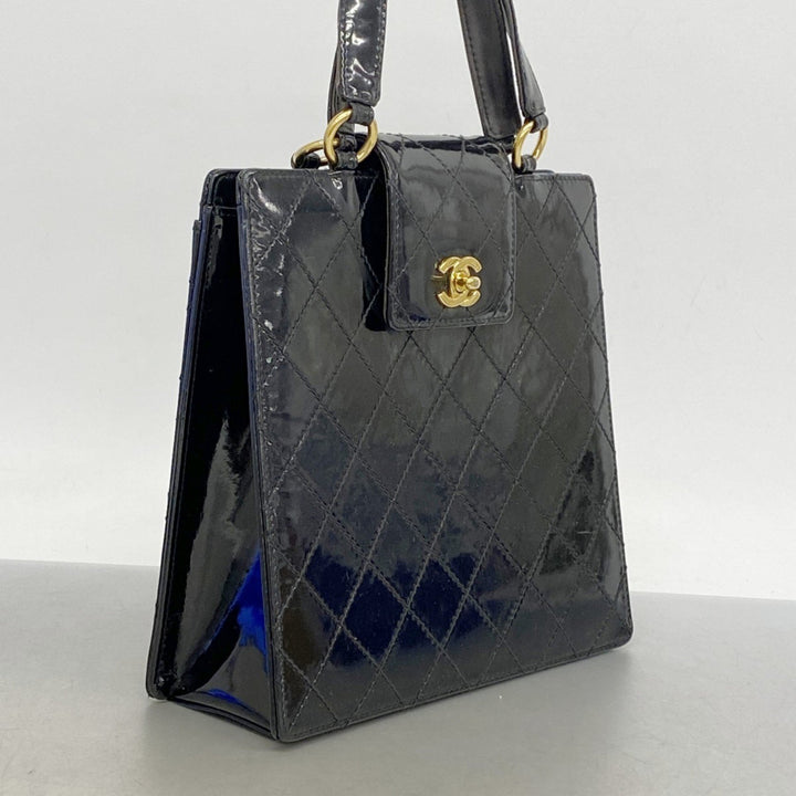 Chanel Matelasse Patent Leather Handbag Brown Women's