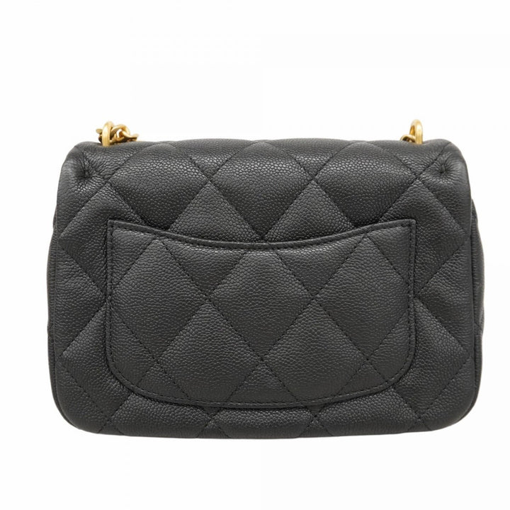 Chanel Matelasse Shoulder Bag with Chain, Caviar Skin, Black, Women's