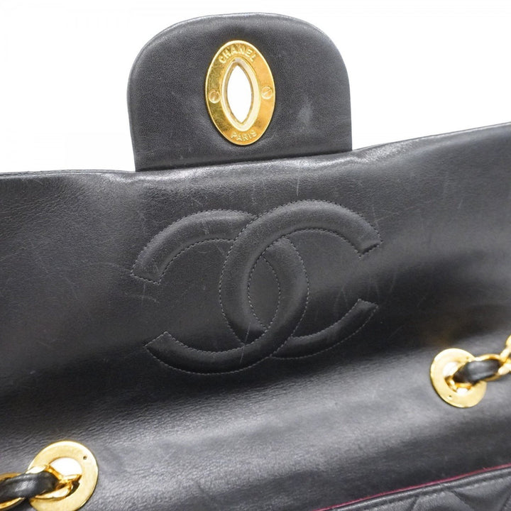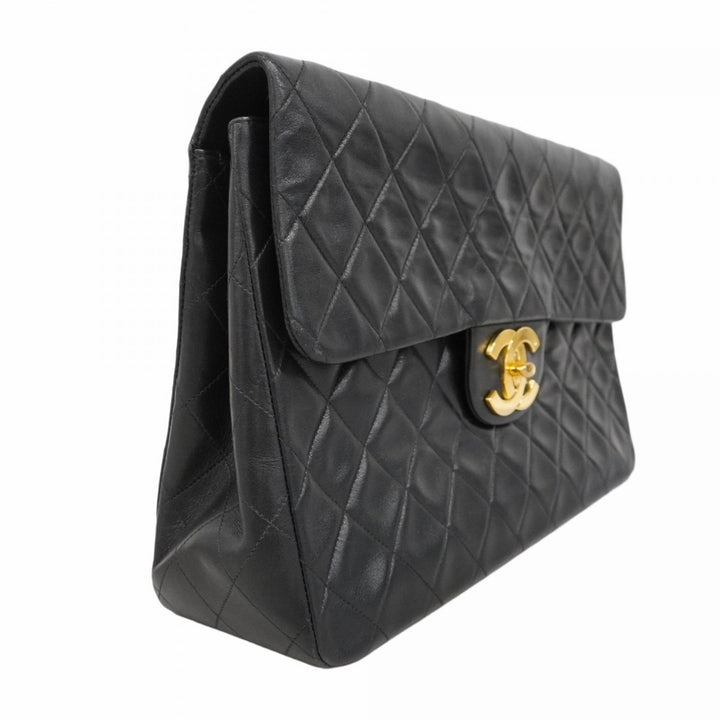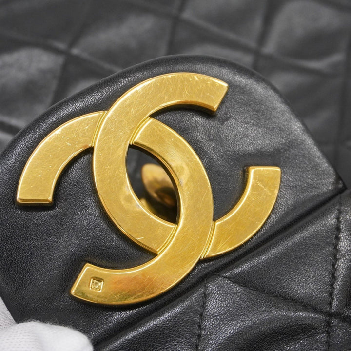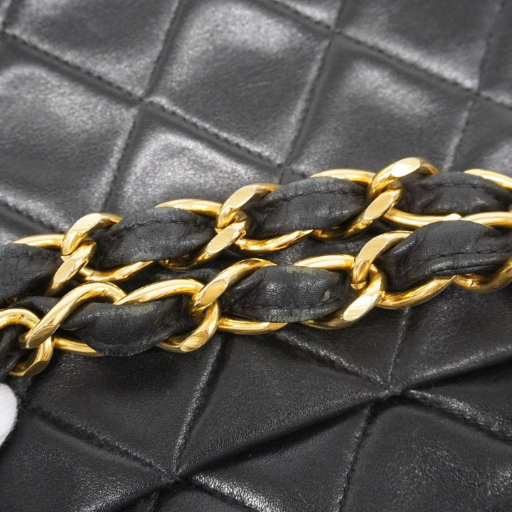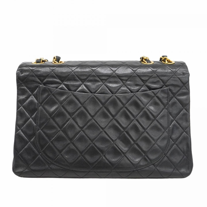 Chanel Shoulder Bag, Large Matelasse, Double Chain, Lambskin, Black, Women's