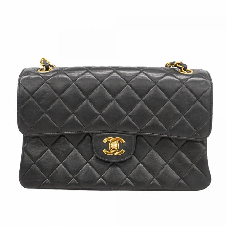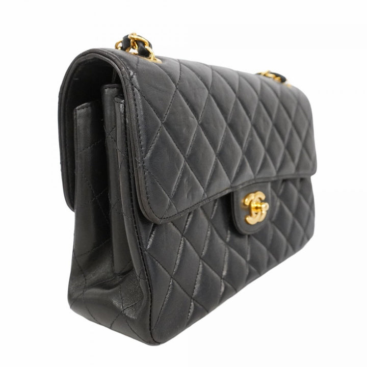 Chanel Shoulder Bag Matelasse W Chain Face Lambskin Black Women's