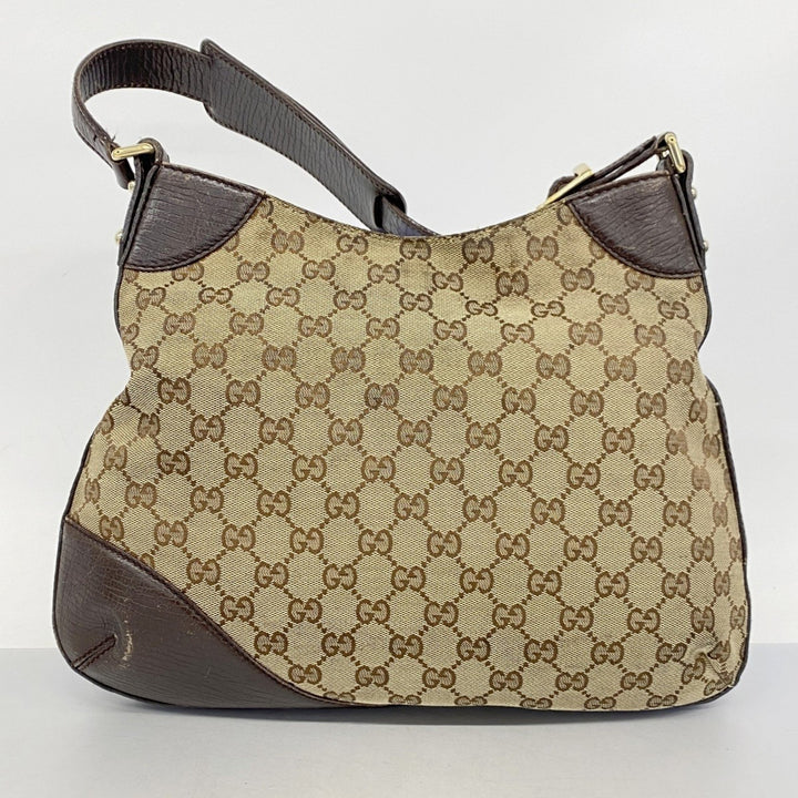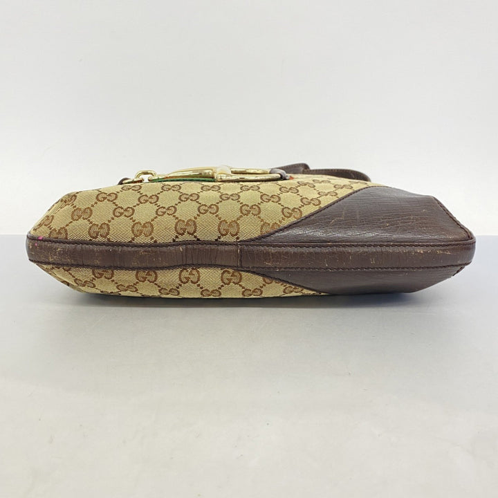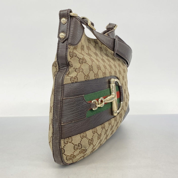 Gucci GG Canvas Sherry Line Horsebit Shoulder Bag 137388 Brown Beige Women's