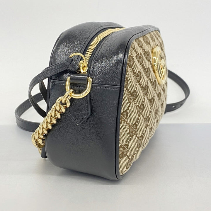 Gucci GG Canvas Shoulder Bag Marmont 447632 Brown Black Women's