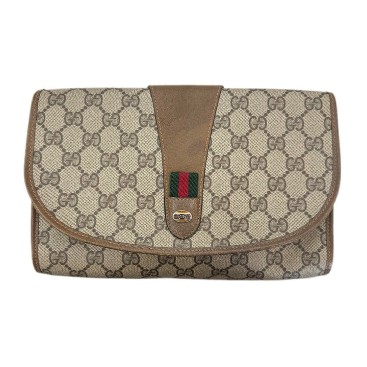 GUCCI GG Supreme Sherry Line Clutch Bag, Old Gucci, Beige/Brown, 89/01/030, Men's/Women's