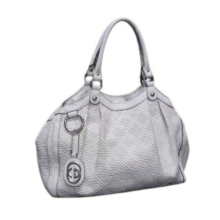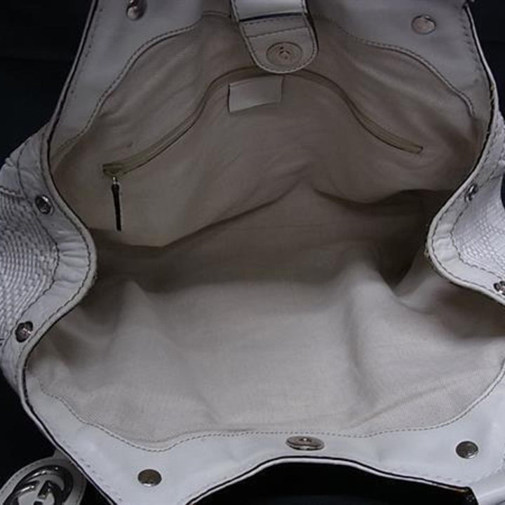 GUCCI Guccissima Diamante Handbag 211944 Ivory Straw x Leather Women's