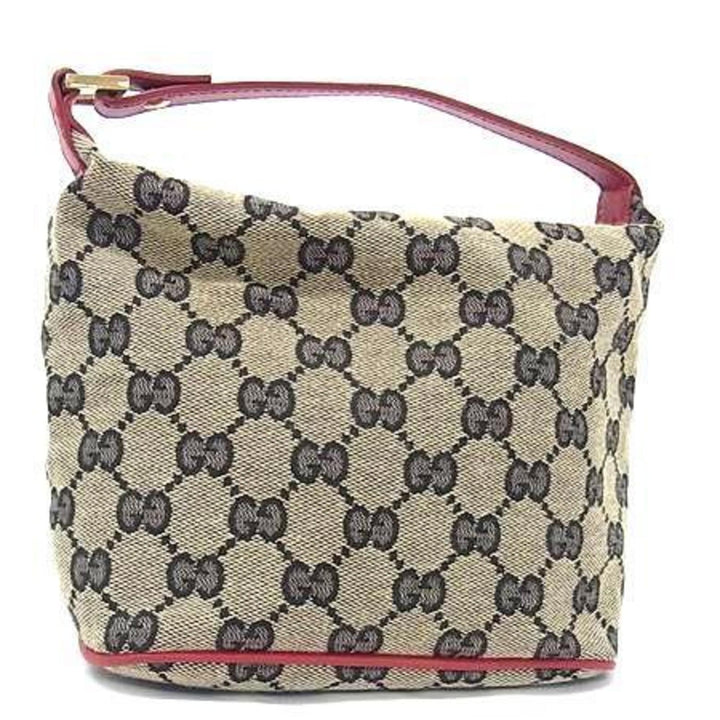 GUCCI One-Handle Handbag 039 1147 Beige x Red GG Canvas Leather Women's