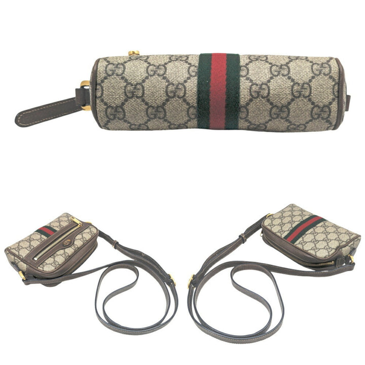 GUCCI Ophidia GG Supreme Sherry Line Mini Shoulder Bag/Pochette in Beige, Mocha Brown, and Leather (517350) for Women