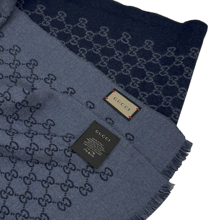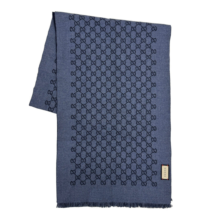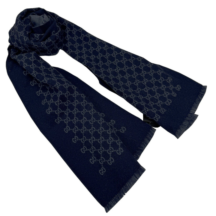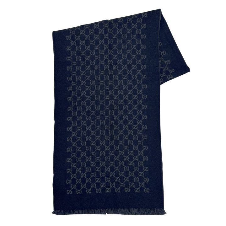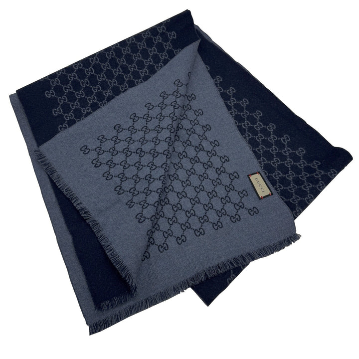 GUCCI reversible wool scarf with GG pattern in navy for men and women