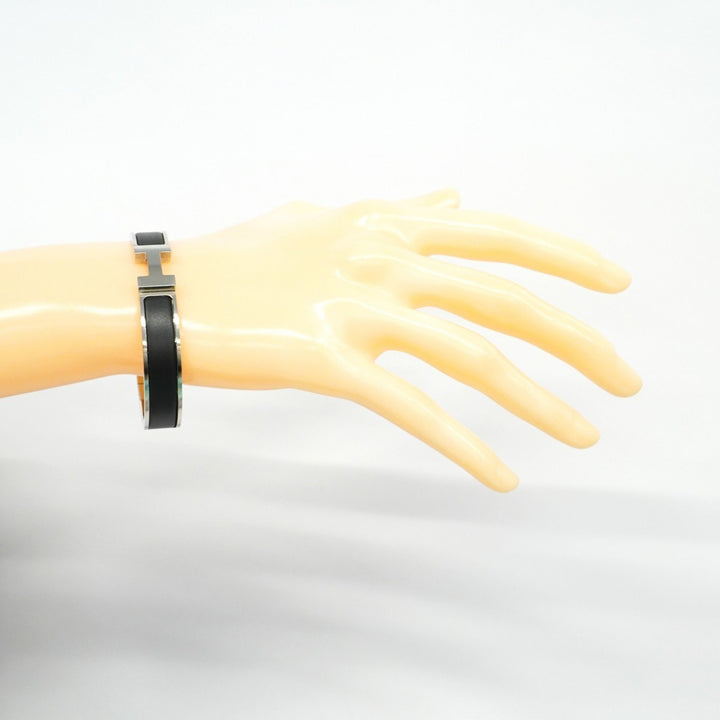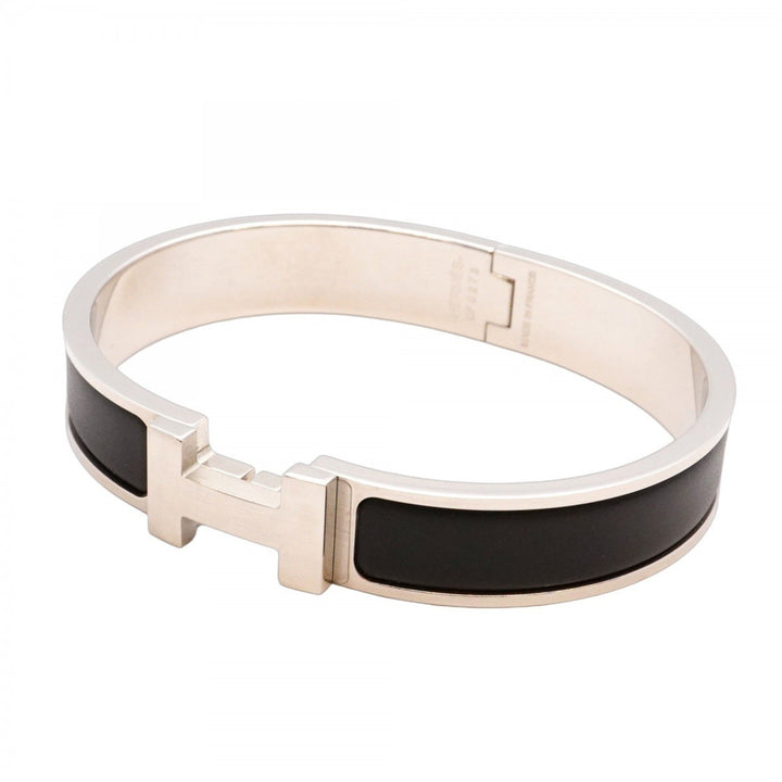 Hermes Hermès Click-Clack PM Bangle in Metal, Silver and Black for Men