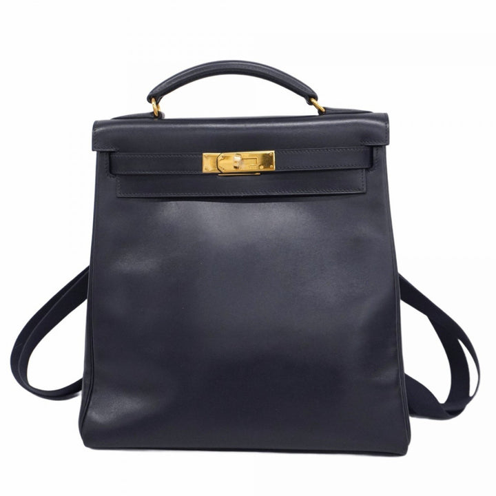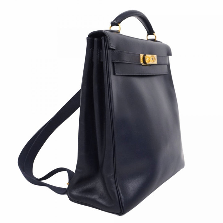 Hermes Hermès Kelly Ad GM Backpack/Daypack in Navy Box Calf Leather with C Stamp for Women