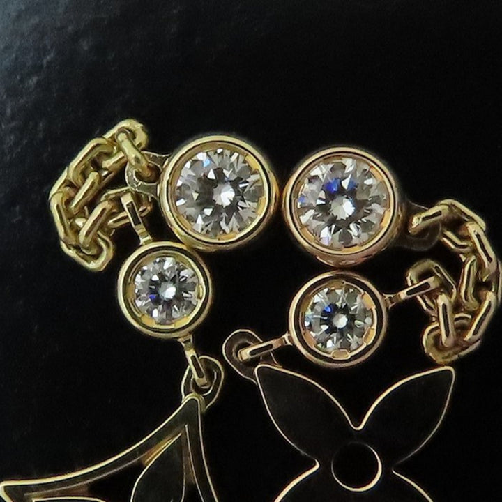 LOUIS VUITTON Monogram Idylle Double Chain Earrings with Diamonds Q96413 Women's 294224