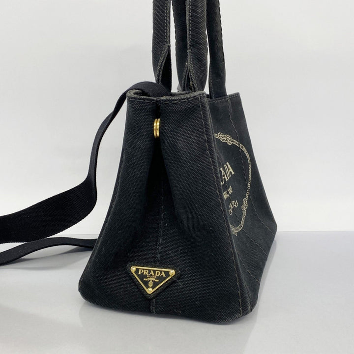 Prada Canapa Canvas Handbag Black Women's
